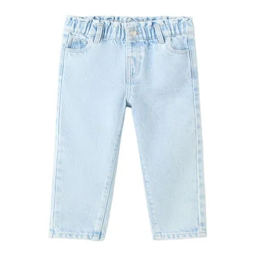 Deze lichtblauwe jeans van Mango Kids is een fijne basis voor elke dag. De denimachtige stof van 100% katoen voelt stevig aan, maar blijft soepel genoeg om in te spelen en te bewegen. Het paperbag-model geeft de Mango Kids barrel jeans een moderne look, terwijl de relaxed vallende pijpen zorgen voor een comfortabele pasvorm. De regular waist met elastische taille maakt aan- en uittrekken eenvoudig, ook voor kleinere kinderen.Praktische details voor elke dag Gemaakt van 100% katoen voor een stevige, maar zachte denimlook Barrel fit met lang ontwerp voor een moderne, ontspannen pasvorm Paperbag-design aan de taille voor een speels en eigentijds effect Elastische taille met knoopsluiting en riemlussen voor een goede aansluiting Vijf zakken in klassiek 5-pocket ontwerp, handig voor kleine spulletjes Effen changeant blauwe kleur die makkelijk te combineren isComfortabele jeans voor school, speelplaats en weekendDoor de elastische taille en de comfortabele barrel fit is deze jeans geschikt voor lange dagen op school, een middag in de speeltuin of een bezoek aan familie. Het lichte denimblauw combineert eenvoudig met T-shirts, truien en sneakers, zodat omkleden in de ochtend snel gaat.Mango Kids: eigentijdse stijl voor kinderenMango Kids staat bekend om kinderkleding met een moderne uitstraling, afgestemd op het dagelijks leven. De collecties zijn gemaakt met aandacht voor pasvorm, draaggemak en actuele stijlen, zodat kinderen zich vrij kunnen bewegen en ouders kunnen rekenen op betrouwbare kwaliteit.Een veelzijdige jeans die gemakkelijk meegroeit met alle dagelijkse avonturen.