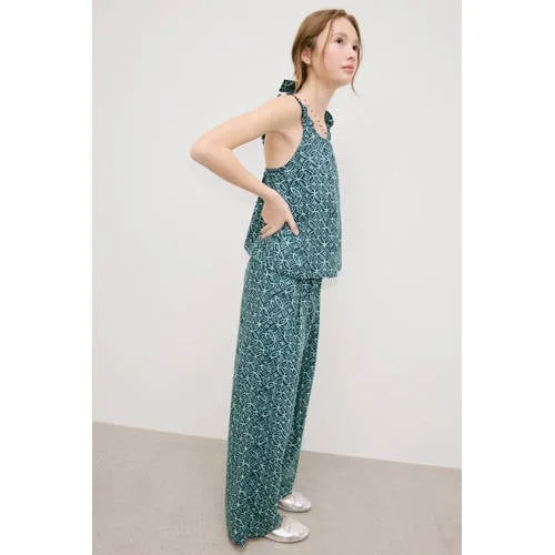Deze katoenen meisjesbroek met all over print is een fijne basic voor elke schooldag of vrije middag. De donkerblauwe en lichtblauwe print geeft meteen een frisse, preppy uitstraling. Door de vloeiende stof en rechte snit valt de broek soepel langs de benen, zonder te strak te zitten. De elastische tailleband zorgt ervoor dat de broek makkelijk aan en uit gaat, ideaal als je kind zelfstandig wil aankleden.Comfort en stijl voor elke dag Gemaakt van 100% katoen, voelt zacht aan op de huid en is prettig om de hele dag te dragen Rechte snit en lang ontwerp voor een moderne, rustige look All over print in donkerblauw/lichtblauw voor een speelse, maar toch verzorgde uitstraling Elastische tailleband voor makkelijk aan- en uittrekken, zonder knopen of ritsen Geen zakken voor een glad silhouet dat mooi onder truien en T-shirts valt Onderdeel van een co-ord set, voor een complete total look met een bijpassend bovenstukHandig te combineren in de kastDeze lange broek past goed bij basic T-shirts, blouses of sweaters in effen kleuren. Zo is je kind in een paar tellen klaar voor school, een etentje met familie of een playdate.Mango Kids: moderne stijl voor kinderenMango Kids staat voor eigentijdse kindermode die aansluit op de stijl van nu, met aandacht voor draagbaarheid en pasvorm. De collecties zijn ontworpen zodat kinderen zich vrij kunnen bewegen en toch verzorgd gekleed zijn, van school tot weekend.Een praktische broek die er verzorgd uitziet en waar je kind zich de hele dag prettig in voelt.