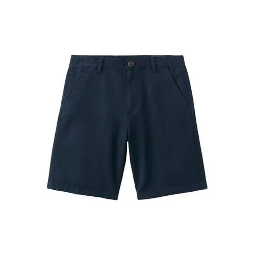 Deze donkerblauwe katoenen korte broek voor jongens van Mango Kids is een praktische basic voor elke dag. De bermuda heeft een recht, kort ontwerp en valt daardoor makkelijk te combineren met T-shirts, overhemden of een lichte trui. De effen kleur en chino look geven een nette, maar ontspannen uitstraling, ideaal voor school, bezoekjes of een dag buiten.Praktische details die het verschil maken Gemaakt van 92 procent katoen en 8 procent linnen voor een luchtig en soepel gevoel Recht model met kort ontwerp voor veel bewegingsvrijheid Rits- en knoopsluiting zorgt voor een stevige, vertrouwde sluiting Lussen in de taille voor het dragen van een riem Twee steekzakken voor en extra zakken achter voor kleine spulletjes Effen donkerblauwe kleur die goed matcht met verschillende tops en schoenen Geschikt voor peuters, kleuters, schoolkinderen en tieners binnen dezelfde stijlVoor alledaagse en nette momentenDeze bermuda past goed bij allerlei momenten, van een gewone schooldag tot een iets nettere gelegenheid. In combinatie met een polo of overhemd oogt de korte broek verzorgd, met een T-shirt wordt de outfit juist weer wat speelser.Mango Kids: eigentijdse kindermodeMango Kids staat voor eigentijdse ontwerpen met een duidelijke en herkenbare stijl. De collectie sluit aan op de laatste trends, maar blijft tegelijk praktisch voor het dagelijks leven met kinderen. Zo krijgt elk kind een garderobe die zowel comfortabel als modern is.Een praktische bermuda die snel een vaste plek krijgt in de kast.