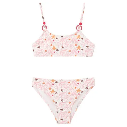 Deze lichtroze bikini set voor meisjes heeft een speels dessin en praktische details. De bikini bestaat uit een crop top en bijpassend bikinislipje, allebei uitgevoerd in een elastische stof met subtiele textuur. Het lichtroze, witte en oranje floraal bedrukte ontwerp zorgt voor een frisse, zomerse look, terwijl de kleine kraaltjes op de schouderbandjes voor een extra accent zorgen.Zomerse details die opvallen Bikini set met crop top en bikinislipje voor schoolkind en tiener Elastische stof die prettig meebeweegt tijdens spelen en zwemmen Stof met textuur voor een moderne, speelse look All over floraal bedrukt ontwerp in lichtroze/wit/oranje Kraaldetail op de schouderbandjes voor extra afwerking Gemaakt van 94% polyamide / 6% elastaan Onderdeel van de badkamercollectie van Mango KidsPraktisch in gebruik en verzorgingDeze bikini is geschikt voor strand, zwembad en waterpret in de tuin. Door de elastische bandjes blijft de top goed zitten tijdens bewegen. Voor het behoud van de kleuren en de stof wordt handwas aangeraden. Niet drogen in de droogtrommel en niet strijken. In verband met hygiëne dient badkleding gepast te worden over het eigen ondergoed.Mango Kids voor dagelijks draagplezierMango Kids is de kindercollectie van Mango, met kleding en badmode die inspeelt op actuele trends en tegelijk draagbaar blijft voor alledag. De ontwerpen zijn afgestemd op de belevingswereld van kinderen, met aandacht voor comfort, pasvorm en speelse details.Een kleurrijke bikini set die klaar is voor elke strand- of zwembaddag.