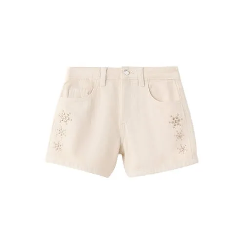 Deze beige denim korte broek voor meisjes van Mango Kids is een basic voor de garderobe van jouw schoolkind of tiener. De shorts heeft een rechte snit en een kort ontwerp, waardoor er een casual look ontstaat. De denim katoenen stof voelt stevig aan en is tegelijk soepel genoeg om comfortabel in te bewegen, passend bij actieve dagen.Praktische details voor elke dag Gemaakt van 100% katoen in denim kwaliteit Rechte pasvorm met kort model, geschikt voor warmere dagen 5-pocket styling met twee achterzakken, twee voorzakken en een muntzakje Rits- en knoopsluiting aan de voorkant Lussen voor een riem zodat de taille eenvoudig aan te passen is Subtiele studs als detail op de denim stof Effen beige kleur die makkelijk te combineren isMakkelijk te stylen, van speelplein tot feestjeDeze denim shorts combineer je eenvoudig met T-shirts, tops of een luchtige blouse. In combinatie met sneakers ontstaat een sportieve outfit, met sandalen krijgt de look een zomerse uitstraling. De korte broek is geschikt voor alledaags gebruik en kan door de nette afwerking ook gedragen worden naar een verjaardag of etentje.Mango Kids: moderne stijl voor jonge trendliefhebbersMango Kids biedt kinderkleding met een eigentijdse uitstraling, geïnspireerd op de volwassen collecties maar afgestemd op het dagelijks leven van kinderen. De ontwerpen combineren draagbaarheid met een modieuze look, zodat elke outfit er verzorgd uitziet en toch comfortabel blijft.Een praktische denim korte broek die zomer na zomer makkelijk uit de kast gepakt wordt.