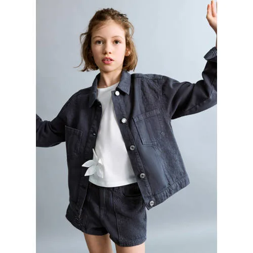 Mango Kids denim short donkerblauw broderie
