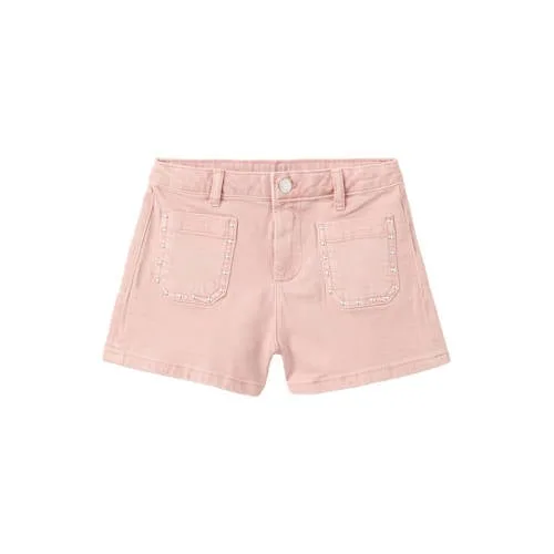 Deze roze denim korte broek voor meisjes van Mango Kids is een fijne basic voor zonnige dagen. De denimachtige katoenen stof met een klein percentage elastaan voelt soepel aan en beweegt makkelijk mee tijdens spelen, rennen en fietsen. De rechte snit en het korte model geven een frisse, moderne look die goed combineert met T-shirts, tops en lichte truien.Praktische details in een vrolijke denim look Gemaakt van 99% katoen / 1% elastaan voor een zachte, licht stretchy stof Rechte snit en kort ontwerp voor een luchtig gevoel op warme dagen Rits- en knoopsluiting aan de voorkant voor een stevige, vertrouwde sluiting Lussen voor een riem zodat de taille makkelijk is aan te passen met een riem Twee zakken aan de voorkant en extra zakken achter voor kleine spullen Subtiele studs als detail voor een speelse, preppy uitstraling Effen roze kleur die goed past bij basics en opvallende printsElke dag draagbaarDeze korte broek past goed bij het dagelijkse leven. Ideaal voor schooldagen in de zomer, een middag in het park of een logeerpartij. Combineer met sneakers en een luchtig T-shirt voor een comfortabele outfit waar makkelijk in bewogen kan worden.Mango Kids stijlvol en speelsMango Kids vertaalt de stijl van Mango naar kinderkleding die past bij het dagelijkse leven. De ontwerpen zijn modern, met aandacht voor pasvorm en draagbaarheid. Zo ontstaat kleding die kinderen zelf graag uit de kast pakken en die ouders makkelijk kunnen combineren.Een veelzijdige roze short die snel een favoriet wordt op warme, actieve dagen.