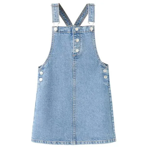 Deze lichtblauwe denimjurk, de Mango Kids spijkerjurk voor meisjes, is een fijne basis voor elke kindergarderobe. De jurk heeft een kort ontwerp met een rechte pasvorm, waardoor er genoeg bewegingsvrijheid is om te spelen, rennen en ontdekken. De lichte spijkerstof van 100% katoen voelt soepel aan en is geschikt voor verschillende seizoenen, met een T-shirt eronder of gewoon mouwloos op warme dagen.Lichtblauwe denim met slimme details Gemaakt van 100% katoen, in een zachte spijkerstof voor dagelijks draagplezier Lichtblauwe denimkleur die makkelijk te combineren is met T-shirts, leggings of een vest Vierkante halslijn voor een moderne, open uitstraling Verstelbare schouderbandjes met knoopsluiting voor een pasvorm die meegroeit Zijsluiting met knopen, handig bij het aan- en uittrekken Decoratieve knoopdetails aan de voorkant voor een verzorgd en speels effect Rechte pasvorm en kort ontwerp, ideaal voor actieve dagen Mouwloos model, goed te stylen in laagjesElke dag draagbaar en makkelijk te combinerenDeze spijkerjurk is geschikt voor alledaags gebruik, maar ook voor nettere momenten. Met sneakers en een T-shirt ontstaat een casual outfit, terwijl de jurk met sandalen en een fijn vest een meer geklede combinatie vormt. De verstelbare bretels zorgen ervoor dat de lengte eenvoudig is aan te passen, wat praktisch is in periodes waarin een kind snel groeit.Mango Kids: eigentijdse stijl voor kinderenMango Kids staat bekend om kinderkleding met een moderne uitstraling en praktische pasvormen. De collecties sluiten aan bij actuele trends, zonder de bewegingsvrijheid en het comfort van kinderen uit het oog te verliezen. Met deze denimjurk kies je voor een doordacht ontwerp dat passend is voor drukke dagen vol activiteiten.Een veelzijdige spijkerjurk die moeiteloos meegaat in het ritme van iedere dag.