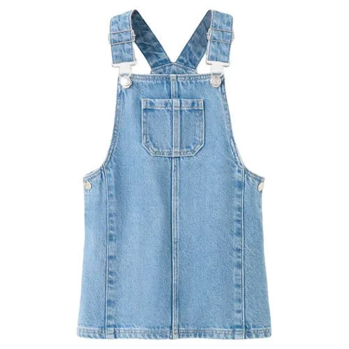 Deze lichtblauwe Mango Kids spijkerjurk voor meisjes is een veelzijdige basic voor de kledingkast. De jurk is gemaakt van 100% katoen in stevige spijkerstof en heeft een rechte pasvorm. De overgooierstijl met vierkante hals en verstelbare schouderbandjes geeft veel bewegingsvrijheid en maakt het eenvoudig om de lengte aan te passen. Ideaal om te combineren met een T-shirt of longsleeve eronder.Denim jurk met doordachte details Gemaakt van 100% katoen, in een stevige maar soepele spijkerstof Rechte pasvorm voor een ontspannen silhouet Overgooierstijl, makkelijk te stylen over een top of blouse Verstelbare schouderbandjes met gespsluiting voor een goede pasvorm Zijsluiting met knopen, waardoor aan- en uittrekken eenvoudig gaat Lichtblauwe denim kleur, makkelijk te combineren met andere kleding Mouwloos model met vierkante halslijn Effen design zonder zakken voor een rustige, tijdloze lookGemakkelijk te combineren elke dagjurkDeze spijkerjurk past goed bij alledaagse outfits. In de zomer kan de jurk gedragen worden met sandalen en een luchtig T-shirt, terwijl op koelere dagen een legging en trui eronder zorgen voor extra warmte. De rechte pasvorm en verstelbare bandjes geven ruimte om te bewegen, wat prettig is tijdens spelen of op school.Mango Kids: eigentijdse stijl voor kinderenMango Kids staat voor moderne, toegankelijke kinderkleding met aandacht voor pasvorm en details. De collecties sluiten aan bij actuele trends, maar blijven draagbaar voor elke dag. Met deze denim jurk kies je voor een betrouwbaar merk dat kinderkleding ontwerpt met oog voor comfort en gebruiksgemak.Een basisjurk waarmee veel verschillende outfits mogelijk zijn, het hele jaar door.