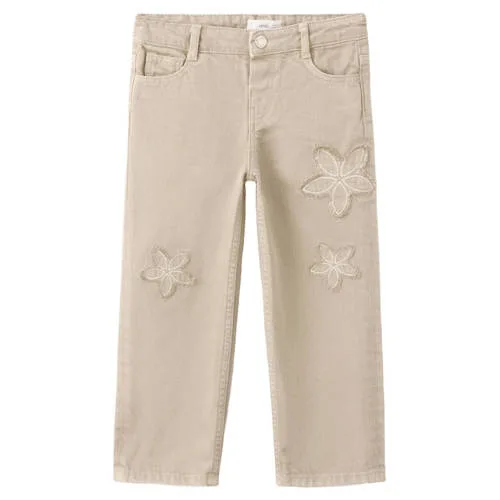 Deze Mango Kids straight leg jeans voor meisjes is een praktische basic met geborduurde bloemendetails. De beige denim past makkelijk bij veel outfits, terwijl de fijne bloemenborduursels voor een subtiel extra detail zorgen. Gemaakt van 100% katoen voelt de stof soepel en stevig aan, ideaal voor dagen vol bewegen, spelen en ontdekken.Handige details voor elke dag Gemaakt van 100% katoen, voor een zachte en stevige denimkwaliteit Straight leg model met lang ontwerp voor een tijdloze look Regular waist, geschikt voor dagelijks gebruik en makkelijk te combineren met T-shirt of trui Vijf zakken in klassieke 5-pocket stijl, handig voor kleine spullen Riemlussen in de taille, zodat er eenvoudig een riem aan toegevoegd kan worden Bloemenborduursels en effen basis, voor een rustig en verzorgd geheelPraktisch in het dagelijks levenDeze straight leg jeans is geschikt voor schooldagen, speelafspraken en familie-uitjes. De rits- en knoopsluiting maakt aan- en uitdoen eenvoudig, terwijl de regular waist goed blijft zitten, ook als er veel wordt bewogen. De neutrale beige kleur combineert makkelijk met sneakers, laarzen of sandalen.Mango Kids voor moderne kidswearMango Kids staat voor kinderkleding met een moderne, toegankelijke stijl. De collecties sluiten aan op actuele trends, maar blijven tegelijkertijd draagbaar voor elke dag. Met deze jeans kies je voor een item dat er verzorgd uitziet en gemaakt is met oog voor praktische details.Een rustige basisjeans met geborduurde details, klaar voor elke dag vol beweging en plezier.