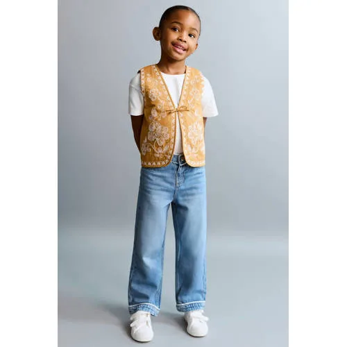 Dit gele Mango Kids gilet voor meisjes geeft elke outfit een speelse en verzorgde uitstraling. De zachte katoenen stof voelt prettig aan op de huid, ideaal voor peuters en kleuters die de hele dag in beweging zijn. Het mouwloze model met openvallende V-hals is perfect om over een T-shirt, blouse of jurkje te dragen en past zowel bij schooldagen als bij feestelijke momenten.Verfijnde details voor een vrolijke look Gemaakt van 100% katoen, wat soepel en comfortabel aanvoelt Bloemenborduursel aan de voorkant voor een subtiel, sierlijk effect Mouwloos model, handig om makkelijk over andere kleding te stylen V-hals en openvallende hals, waardoor het gilet luchtig oogt en draagt Striksluiting aan de voorkant voor een verstelbare en kindvriendelijke pasvorm Effen gele kleur die eenvoudig te combineren is met jeans, rokjes en shortsIdeaal laagje voor preppy kinderoutfitsDit gilet sluit mooi aan bij een preppy stijl. Combineer het met een gestreept T-shirt en een denim short voor een casual set, of draag het over een blouse met kraag voor een nettere look. Door het lichte gewicht is het gilet ook fijn als extra laagje tijdens frisse ochtenden of in het klaslokaal.Mango Kids: speels en stijlvolMango Kids staat voor modieuze kinderkleding met aandacht voor draagcomfort en detail. De ontwerpen volgen de actuele trends, maar blijven toch praktisch voor het dagelijkse leven met kinderen. Met dit gilet kies je voor een stijlvol kledingstuk dat goed past in de garderobe van een peuter of kleuter.Een vrolijk en veelzijdig laagje dat moeiteloos meegaat in het ritme van alledag.