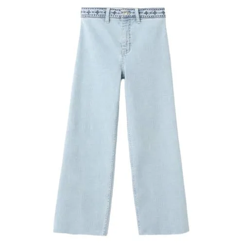 Deze lichtblauwe Mango Kids wide leg jeans voor meisjes is een praktische basis voor alledaagse outfits. De jeans heeft een hoge taille en een culottemodel, waardoor er een eigentijdse, losse pasvorm ontstaat met veel bewegingsvrijheid. De katoenen stof met een klein beetje elastaan voelt soepel aan en blijft goed zitten tijdens spelen, naar school gaan en logeerpartijtjes.Lichtblauwe wide leg jeans met speelse details Wide leg model met culottevorm voor een losse, rechte pijp Hoge taille voor een moderne look en een comfortabele fit Gemaakt van 99 procent katoen en één procent elastaan voor lichte stretch Rits- en knoopsluiting met riemlussen voor een verstelbare taille met riem Geborduurde details bij de taille voor een subtiele, speelse afwerking Twee achterzakken voor een klassieke jeansuitstraling Effen light blue denim, makkelijk te combineren met T-shirts, truien en blousesElke dag draagbaar denimDeze jeans past goed bij allerlei momenten van de dag. Combineer de wide leg pijpen met sneakers voor een relaxte look of met nette schoenen voor een iets gekledere combinatie. De hoge taille sluit mooi aan rond de heupen en blijft goed op de plek, zodat alles de hele dag comfortabel blijft zitten.Mango Kids: moderne stijl voor kinderenMango Kids staat voor eigentijdse, toegankelijke mode voor kinderen. De ontwerpen volgen de laatste trends en blijven tegelijkertijd praktisch in het dagelijks gebruik. Met deze jeans kies je voor een modern kledingstuk dat goed aansluit bij het actieve leven van kinderen.Een comfortabele jeans die stijl en gemak combineert in één alledaagse broek.