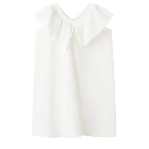Deze witte feestelijke meisjes jurk van Mango Kids is een lichte, praktische keuze voor speciale momenten. De jurk heeft een kort ontwerp met een V-hals en subtiele ruches langs de halslijn. Door de mouwloze snit blijft het luchtig op warme dagen en kan er gemakkelijk een vestje overheen als het frisser is. De effen witte kleur zorgt voor een rustige uitstraling die past bij verschillende feestelijke gelegenheden.Lichte jurk met verfijnde details Gemaakt van zachte katoenen stof met een beetje stretch voor extra bewegingsvrijheid Kort model, passend voor schoolgaande kinderen V-hals met ruchesdetail bij de hals voor een speelse, nette look Mouwloos ontwerp, praktisch op warme dagen of onder een dun vest Effen witte kleur, te dragen met sandalen, ballerina's of sneakers Geen sluiting, de jurk wordt eenvoudig over het hoofd aangetrokken Geschikt voor feestelijke gelegenheden zoals een bruiloft of familiefeestVoor feestjes, bruiloften en bijzondere dagenDeze jurk is geschikt voor momenten waarop je kind er net wat gekleder uit mag zien, en zich toch vrij kan bewegen. Handig voor een dag als bruiloftsgast, een feestje op school of een viering met de familie. Met een haaraccessoire en een licht jasje is de outfit zo compleet.Mango Kids voor alledaags en bijzonderMango Kids ontwerpt kleding die aansluit op het dagelijks leven van kinderen, met een duidelijke focus op draagcomfort en een moderne stijl. De collecties volgen de mode van nu, maar blijven praktisch in gebruik, zodat kinderen vrij kunnen spelen, bewegen en groeien in kleding die comfortabel aanvoelt en er verzorgd uitziet.Een jurk voor momenten die net iets specialer mogen aanvoelen.