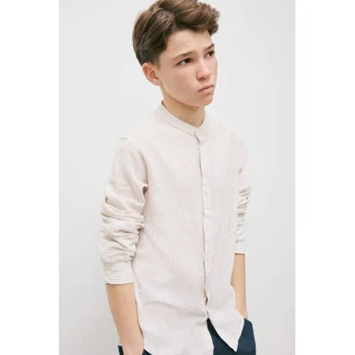 Mango Kids linnen gestreepte overhemd beige