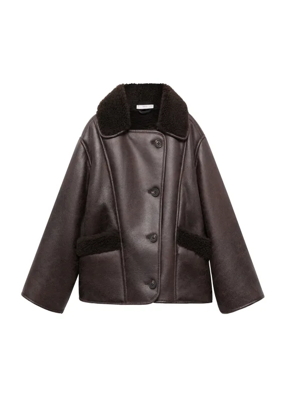Type mantel: Klassieke mantel; Design: Rechte zoom, Knop placket, Overcut schouder, Turn-down kraag, Opgezette zakken; Type sluiting: Knoopsluiting; Voering: Warm gevoerd; Materiaal: Imitatieleder; Motief: Effen; Extra's: Teddy voering, Op staal naden, Met faux bont trim, Gladde stof; Pasvorm: Normale pasvorm