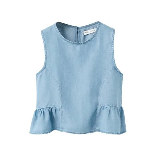 Deze lichtblauwe top van Mango Kids is een praktische basic met een lichtblauwe denimlook. De mouwloze denim top voor meisjes is gemaakt van 100% lyocell in een jeansstijl, waardoor de stof soepel valt en zacht aanvoelt op de huid. Het effen ontwerp maakt de top makkelijk te combineren, terwijl de subtiele details zorgen voor een verzorgde look.Zachte denimlook met leuke details Gemaakt van 100% lyocell in jeansstijl voor een zachte, soepele touch Lichtblauwe denimkleur die goed past bij shorts, rokjes en jeans Mouwloos model, ideaal voor warmere dagen of onder een vest Vierkante hals voor een moderne, preppy uitstraling Recht ontwerp dat comfortabel draagt bij schoolkinderen en tieners Knoopsluiting, handig bij het aan- en uittrekken Plooien en een klein strikje als subtiel accent aan de voorkant Peplum stijl onderaan voor een licht uitlopend effectVoor school, feestje en vrije tijdDeze top past goed bij de preppy stijl. Combineer met een witte jeans, een geplooide rok of een korte broek en sneakers voor dagelijks gebruik. Voor een iets gekledere look is een fijn vestje of een blazer erbij een eenvoudige stap.Mango Kids: eigentijdse stijl voor kinderenMango Kids staat voor moderne kinderkleding met herkenbare trends en draagbare ontwerpen. De collecties combineren comfortabele pasvormen met actuele kleuren en stijlen, zodat kinderen zich vrij kunnen bewegen en er verzorgd uitzien.Een veelzijdige top die goed past in de garderobe van je kind.