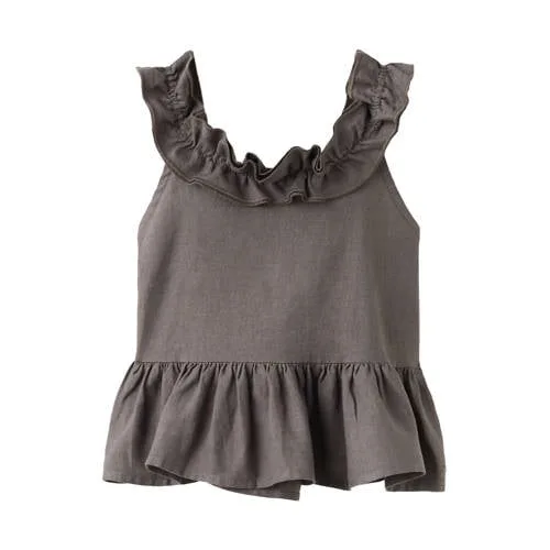 Deze mouwloze meisjes top van linnenmix is een lichte, zomerse basic met een speelse uitstraling. De donkerbruine kleur oogt rustig en modern, terwijl de ruches en de geplooide details zorgen voor een subtiel preppy effect. De top heeft een recht ontwerp met een cropped onderkant, waardoor hij precies op een taillebroek of rok valt. De linnenmix stof met 55% linnen en 45% viscose voelt luchtig aan, ideaal voor warme dagen.Verfijnde details voor elke dag Linnenmix stof met 55% linnen en 45% viscose voor een lichte en ademende touch Recht ontwerp dat veel bewegingsvrijheid geeft en makkelijk combineert Bandjes met ruche voor een speels en meisjesachtig detail Ruche zoom en plooien voor een subtiele peplum look Sluiting aan de achterkant zodat de top gemakkelijk aan en uit gaat Cropped onderkant, passend bij een high waist broek of rok Effen donkerbruine kleur die goed past bij neutrale en frisse tintenSpeelse top voor school en vrije tijdDeze top past goed binnen de preppy collectie en is fijn voor schooldagen, een etentje of een verjaardag. In combinatie met een luchtige broek of korte rok ontstaat in een paar seconden een verzorgde outfit met voldoende bewegingsvrijheid.Mango Kids: eigentijdse stijl met praktisch gemakMango Kids staat bekend om moderne kleding met herkenbare details, passend bij het dagelijks leven. De collecties sluiten aan bij actuele trends, maar blijven comfortabel en praktisch in gebruik. Zo combineert Mango Kids een modieuze uitstraling met draagbare items voor school, feestjes en ontspannen momenten.Een luchtige top die elke zomerse outfit net wat meer karakter geeft.