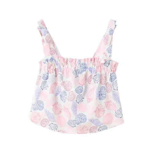 Deze mouwloze top voor meisjes van Mango Kids is een luchtig bovenstuk voor zonnige dagen. De top is gemaakt van 100% katoen en voelt zacht en soepel aan op de huid. De rechte snit valt comfortabel, terwijl de vierkante hals en de bandjes met striksluiting zorgen voor een speelse, verzorgde look. De marineprint in wit/roze/paars en de all over print geven een frisse en preppy uitstraling, passend bij schoolkinderen en tieners.Speelse details en comfortabel draaggevoel Gemaakt van 100% katoen voor een ademende en zachte feel Mouwloos model, ideaal voor warme dagen of onder een vest Vierkante hals en rechte snit voor een rustige, moderne vorm Bandjes met striksluiting waarmee de pasvorm eenvoudig aan te passen is Marineprint in wit/roze/paars met all over print voor een preppy look Ruches langs de bovenkant voor een subtiel, decoratief detailVoor schooldagen, vakantie en vrije tijdDe top is geschikt voor alledaagse momenten, van schooldagen tot vakantie en logeerpartijtjes. Staat goed op een korte broek of een rok en kan op frissere dagen makkelijk gecombineerd worden met een dun vest of jasje.Mango Kids voor moderne kinderkledingMango Kids staat voor kinderkleding met een eigentijdse stijl, afgestemd op het dagelijkse leven van kinderen. De collecties combineren draaggemak met doordachte details, zodat elk item prettig aanvoelt en er verzorgd uitziet. Zo wordt aankleden eenvoudig en duidelijk.Een praktische, katoenen basic met speelse details voor veel draagmomenten in één seizoen.