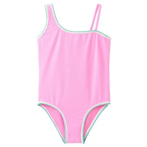 Met dit asymmetrisch badpak voor meisjes geef je haar zwemoutfit een speelse, moderne twist. Het one shoulder ontwerp met dunne bandjes en contrasterende biesjes in roze en blauw valt direct op, zonder drukke prints. De elastische stof met subtiele reliëf structuur sluit mooi aan op het lichaam en blijft goed op zijn plek tijdens spelen en zwemmen.Details die opvallen aan het zwembad One shoulder badpak met asymmetrisch ontwerp voor een moderne look Elastische stof die soepel meebeweegt tijdens zwemmen en spelen Textuur met reliëf voor een stijlvolle, rustige uitstraling Dunne bandjes en contrasterende gekleurde biesjes in roze/blauw Effen design met contrast stiksels, passend bij een preppy stijl Geschikt voor schoolkind en tiener, onderdeel van de badkamercollectie Materiaal: 77% polyamide en 23% elastaan voor een aansluitende pasvorm Hygiënisch passen: altijd over de eigen onderbroek aantrekken Verzorging: handwas, niet strijken en niet drogen in de droogtrommelKlaar voor strand, zwembad en zwemlesOf ze nu een middag in het zwembad ligt of naar zwemles gaat, dit badpak biedt volop bewegingsvrijheid. De elastische stof en het asymmetrische model zorgen voor een comfortabele fit, terwijl de contrasterende biesjes haar outfit net wat extra kleur geven.Mango Kids: eigentijdse stijl voor kinderenMango Kids staat voor kinderkleding met een moderne, toegankelijke uitstraling. De ontwerpen volgen de trends, maar blijven draagbaar voor elke dag. Met dit badpak kies je voor een stijl die past bij kinderen die van mode houden en graag zorgeloos willen spelen.Een frisse, preppy keuze voor zonnige dagen aan het water.