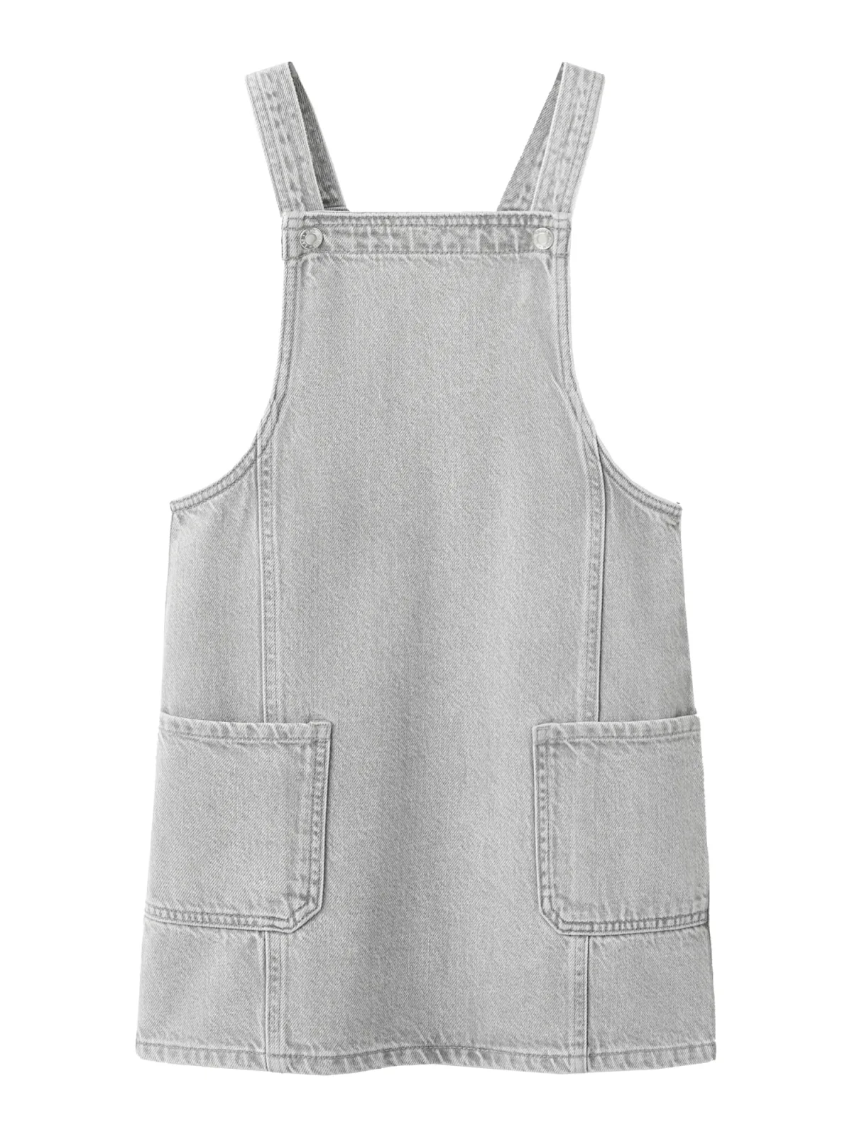 Deze mouwloze Mango Kids spijkerjurk voor meisjes is een praktische basic voor elke dag. De denimachtige katoenen stof in grey denim heeft een casual stijl die bij veel outfits past, terwijl het rechtvallende model zorgt voor een ontspannen pasvorm. Geschikt voor drukke dagen vol spelen, ontdekken en bewegen.Praktische details voor elke dag Gemaakt van 100% katoen, wat zacht aanvoelt en prettig is op de huid Denimachtige stof in de kleur grey denim voor een neutrale uitstraling Recht ontwerp met korte jurk lengte, passend bij verschillende lagen kleding Rechte, vierkante halslijn voor een rustige, eenvoudige belijning Bretels met knoopsluiting, zodat de bovenkant goed blijft zitten Voorste knoopsluiting over de hele lengte, eenvoudig aan en uit te trekken Twee opgestikte zakken aan de voorkant, handig voor kleine spulletjesGeschikt van lente tot en met herfstDeze korte jurk is geschikt om in verschillende seizoenen te dragen. Op warme dagen kan de jurk zo worden gedragen, bij frisser weer is er ruimte voor een extra laag eronder of een vest erbovenop. De effen grey denim kleur maakt het eenvoudig om de jurk te combineren met andere items uit de kledingkast.De stijl van Mango KidsMango Kids ontwerpt moderne kinderkleding met een ontspannen stijl. De focus ligt op dagelijks draagplezier, met materialen die prettig aanvoelen en details die aansluiten bij het leven van actieve kinderen.Een spijkerjurk die klaar is voor alledaagse avonturen.