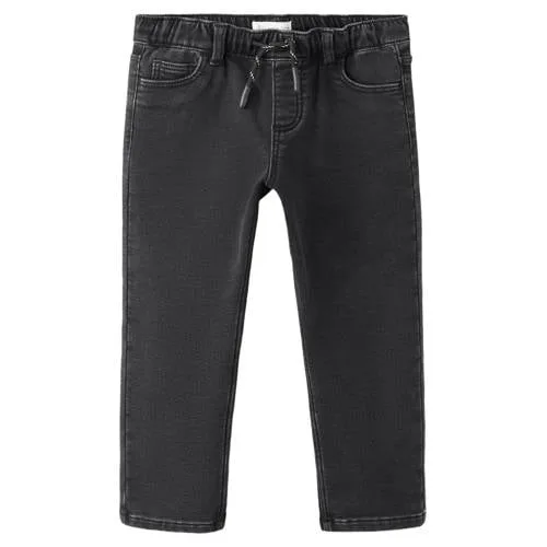 Deze comfortabele jeans jongens Mango Kids combineert de stoere look van denim met het gemak van een joggingbroek. De katoenen stof in jeansstijl heeft een changeant grijze kleur, waardoor de broek er net even anders uitziet dan een standaard blauwe jeans. Dankzij de slim-fit pasvorm sluit de broek mooi aan, terwijl de elastische tailleband met verstelbaar koord zorgt voor extra draaggemak bij dagelijks spelen en bewegen.Praktische details voor elke dag Slim-fit model met lang ontwerp voor een aangesloten, moderne look Elastische tailleband met verstelbaar koord voor een goede en comfortabele pasvorm Vijf zakken en riemlussen voor de herkenbare jeansuitstraling Katoenen stof in jeansstijl met changeant grijze kleur voor een rustige, effen basis Materiaal: 77 procent katoen, 21 procent polyester, 1 procent elastomeer, 1 procent viscoseStoere broek voor school en vrije tijdDe slim fit jeans is gemaakt voor drukke dagen vol beweging. De elastische tailleband maakt aan- en uittrekken eenvoudig, ook voor kinderen die het graag zelf doen. Door de effen changeant grijze kleur is de broek makkelijk te combineren met T-shirts, truien en hoodies, van sportief tot net iets gekleder.Mango Kids: moderne stijl voor kinderenMango Kids staat voor eigentijdse kinderkleding met oog voor detail en draagcomfort. De ontwerpen volgen de looks van nu, maar blijven tegelijk praktisch in het dagelijks gebruik. Zo sluit de collectie goed aan bij het leven van actieve kinderen én bij de wensen van ouders.Een fijne basisjeans voor jongens die graag vrij bewegen en er toch verzorgd uitzien.