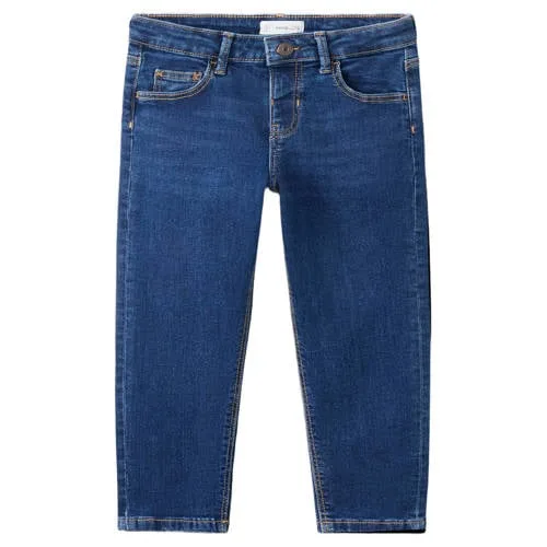 Deze Mango Kids slim fit jeans is een praktische basic voor elke dag. De medium blue denim kleur is gemakkelijk te combineren en past bij veel T-shirts, truien en sneakers. Door het getailleerde ontwerp met slim-fit pasvorm sluit de jeans mooi aan zonder strak aan te voelen, ideaal voor actieve dagen vol beweging.Praktische details voor dagelijks gebruik Gemaakt van 98% katoen en 2% elastaan voor een soepele, licht stretchende stof Slim-fit model met lang ontwerp voor een moderne, aansluitende look Vijf-pocket stijl met twee achterzakken, twee voorzakken en een muntzakje Riemlussen in de taille zodat er eenvoudig een riem aan toegevoegd kan worden Drukknoopsluiting die snel en gemakkelijk open en dicht gaat Effen medium blue denim kleur die het hele jaar door gedragen kan wordenComfortabele jeans voor school en vrije tijdDeze jongensjeans in denimstijl is geschikt voor schooldagen, speelafspraken en familiedagen. De katoenrijke stof voelt prettig aan op de huid en de toevoeging van elastaan geeft net wat extra bewegingsvrijheid tijdens rennen, fietsen of spelen.Mango Kids: moderne stijl voor kinderenMango Kids staat bekend om kinderkleding met eigentijdse ontwerpen en doordachte pasvormen. De collecties sluiten aan op actuele trends en zijn ontworpen met oog voor draagcomfort, zodat kinderen zich vrij kunnen bewegen en er verzorgd uitzien.Een comfortabele jeans die gemakkelijk zijn plek vindt in de dagelijkse garderobe.