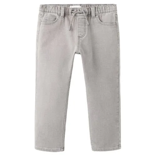 Deze Mango Kids slim fit jeans jongens is een praktische basis voor elke dag. De broek heeft de stoere uitstraling van denim, maar voelt licht en soepel aan door de katoenen stof in jeansstijl. De changeant grijze kleur geeft een rustige, eigentijdse look die gemakkelijk te combineren is met T-shirts, truien en sneakers.Comfortabele pasvorm voor actieve dagen Slim fit: slank toelopende pijpen voor een moderne, aangesloten look. Elastische tailleband met koord: zorgt voor een flexibele pasvorm en eenvoudig aan- en uittrekken. Vijf zakken: klassieke vijf-pocketjeansindeling met voldoende ruimte voor kleine spullen. Katoenen stof in jeansstijl: gemaakt van 77% katoen, 21% polyester, 1% elastomeer en 1% viscose voor vormvastheid en bewegingsvrijheid. Riemlussen: ook te dragen met een riem voor extra zekerheid en styling. Effen design: changeant grijs zonder print voor een rustige, veelzijdige uitstraling.Jeans die met alles mee de kast uit magDeze lange jongensjeans is geschikt voor school, speelafspraken en familie-uitjes. De elastische tailleband met koord biedt comfort tijdens het bewegen, terwijl de slim fit vorm goed blijft zitten, ook na veel dragen en wassen.Mango Kids: eigentijdse stijl voor elke dagMango Kids staat bekend om moderne collecties met aandacht voor pasvorm en draaggemak. De ontwerpen sluiten aan bij wat kinderen graag dragen en bij wat ouders praktisch vinden, met kleding die prettig zit en er verzorgd uitziet.Een veelzijdige jeans die elke dag weer uit de kast gepakt kan worden.