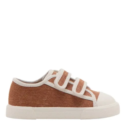 Deze roestbruine en ecru jongens sneakers van Mango Kids zijn een praktische keuze voor elke dag. De combinatie van zachte katoenen stof en een flexibele rubberzool zorgt voor een comfortabel gevoel bij het lopen en spelen. Door het lage model ogen de schoenen sportief en licht, ideaal voor actieve peuters en kleuters.Comfort en gemak voor kleine voeten Buitenkant van textiel met 100% katoen voor een zachte touch Voering van 100% katoen voelt prettig aan op de huid Rubberen zool van 100% rubber voor goede grip op verschillende ondergronden Klittenbandsluiting, zodat kinderen de schoenen zelf makkelijk aan en uit doen Ronde neus geeft tenen genoeg ruimte om te bewegen Laag model met platte zool, passend bij een normale leest Roestbruin/ecru kleur met meerkleurige details uit de preppy collectieVoor school, speelplaats en daarbuitenDeze sneakers passen goed bij een jeans, chino of jogger en zijn geschikt voor schooldagen, speelafspraakjes en uitstapjes met het gezin. De klittenbandsluiting is praktisch tijdens drukke momenten, omdat je schoenen snel vastzet en weer losmaakt.Mango Kids: moderne stijl voor kinderenMango Kids brengt kinderkleding en schoenen met een moderne, toegankelijke stijl. De ontwerpen sluiten aan bij actuele trends, maar blijven tegelijkertijd praktisch en draagbaar voor alledag. Zo kies je voor items die er verzorgd uitzien en prettig te dragen zijn voor kinderen.Een praktische en stijlvolle basis voor het schoenenrek van je kind.