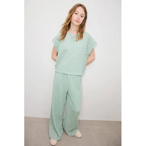 Mango Kids straight casual broek turquoise met textuur Prijzen