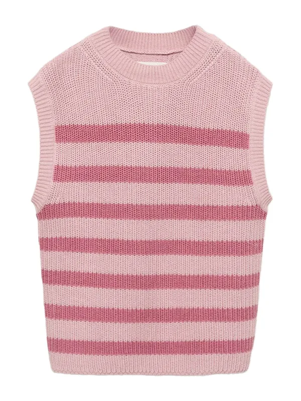Design: Geribbelde kraag, Geribd ceintuurtje; Materiaal: Knitwear; Halstype: Ronde hals; Motief: Gestreept; Extra's: Fully fashioned, Voelt zacht aan; Pasvorm: Normale pasvorm; Armlengte: Mouwloos; Lengte: Normale lengte