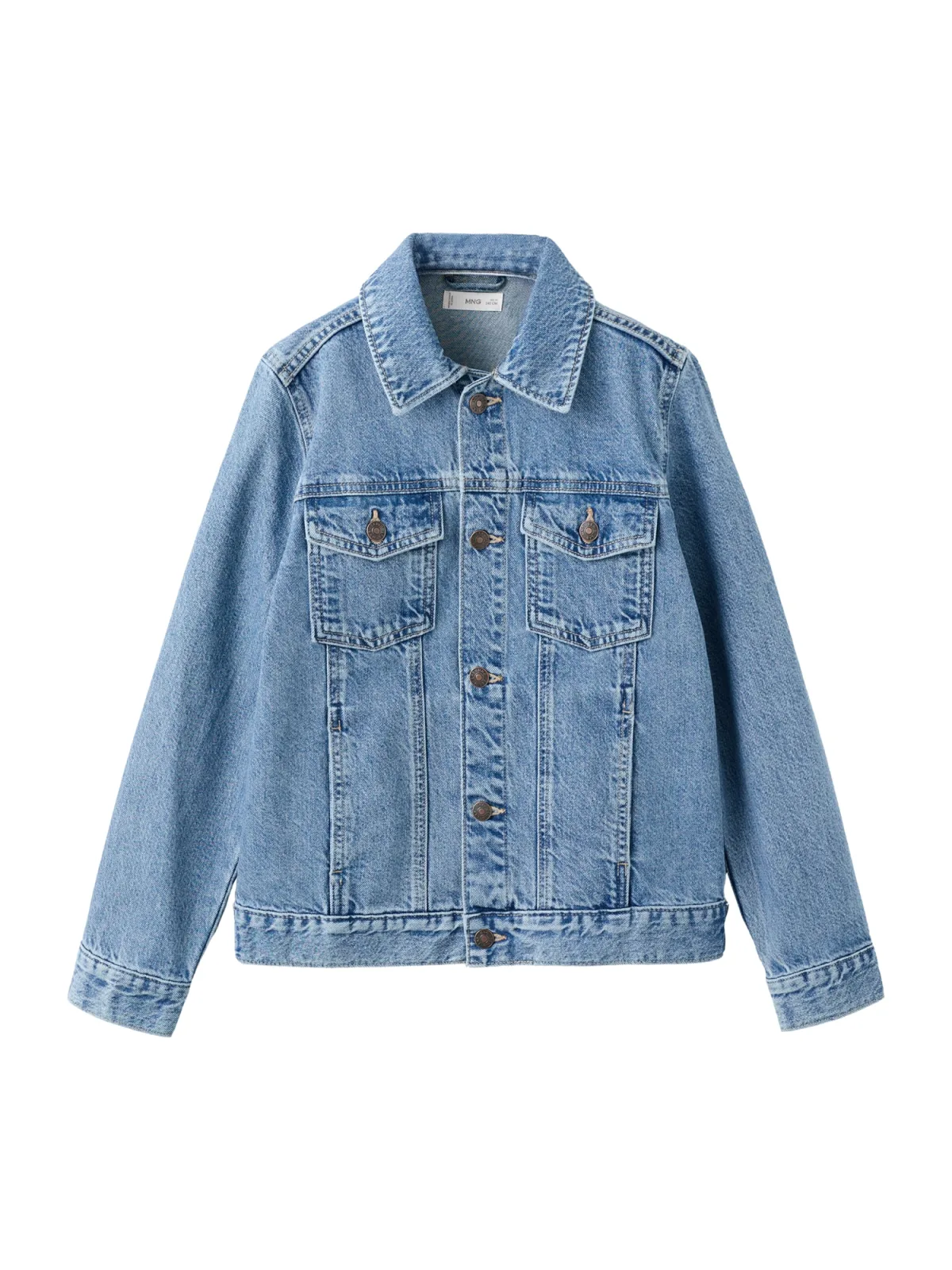Voor een stoere, maar toch nette look is deze Mango Kids denim jas voor jongens een fijne basis in de garderobe. De jas heeft het herkenbare karakter van een spijkerjas in medium blue denim en combineert dat met het comfort van een licht zomerjack. Gemaakt van 100% katoen voelt de stof soepel aan en is deze jas geschikt voor frisse ochtenden op weg naar school of een relaxte dag in het weekend.Details die elke dag mee kunnen Gemaakt van 100% katoen, met een prettige denim kwaliteit Recht ontwerp voor een relaxed silhouet dat makkelijk over een T-shirt of trui valt Klassieke overhemdkraag voor een verzorgde, preppy uitstraling Lange mouwen met knoopmanchetten, eenvoudig op te rollen als het warmer wordt Twee borstzakken met knoop en zakken voor kleine essentials Knoopsluiting over de hele lengte, handig aan en uit te trekken Geschikt als spijkerjas en zomerjas voor schoolkind en tienerIdeaal voor schooldagen en vrije tijdDeze jas past goed bij een T-shirt, chino of favoriete jogger en sneakers. Door de rechte pasvorm is er genoeg ruimte voor een dunne trui eronder op koelere dagen. In de zakken kunnen sleutels, een kaart of wat kleingeld mee. Handig voor school, een dagje stad of een etentje met de familie.Mango Kids: stijlvol en kindvriendelijkMango Kids staat bekend om moderne kinderkleding met een duidelijke link naar de volwassen collecties, maar dan afgestemd op het dagelijkse leven van kinderen. De ontwerpen zijn draagbaar, eigentijds en gemaakt met aandacht voor pasvorm en details. Zo krijgt jouw kind kleding waarin spelen, ontdekken en er verzorgd uitzien moeiteloos samengaan.Een denim favoriet waar jouw kind de hele zomer en ver daarna plezier van heeft.