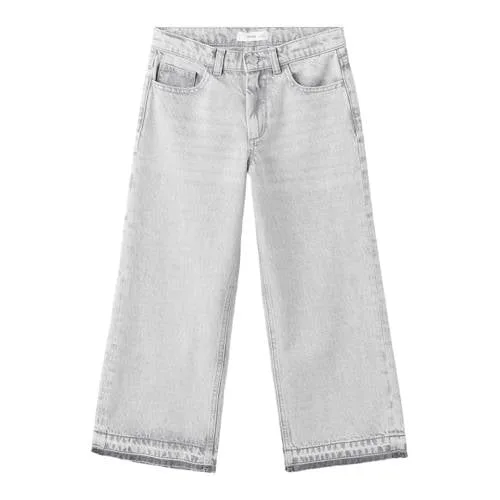 Deze Mango Kids wide leg jeans in grey denim geeft elke outfit van je meisje een stoere, ontspannen uitstraling. De broek heeft een culottemodel met wijde pijpen en een standaardlengte, waardoor er genoeg ruimte is om vrij te bewegen. De changeant grijze kleur met lichte slijtage-effecten zorgt voor een eigentijdse look die makkelijk te combineren is met T-shirts, truien en sneakers.Culottemodel met speelse rafelzoom Wide leg pasvorm met culottemodel voor een luchtig, recht silhouet Gerafelde broekspijp zonder zoom voor een casual, gedragen effect Regular waist met verstelbaar elastiek in de taille aan de binnenkant Rits- en knoopsluiting en riemlussen voor een klassieke jeanslook Vijf-pocket stijl: muntzakje, twee zijzakken en opgestikte achterzakken Gemaakt van katoenen denimstof met platte structuur Effen grey denim met subtiele slijtage details voor extra karakterComfortabele jeans voor elke dagDe regular waist taillehoogte en het wijde model maken deze jeans fijn voor schooldagen, speelafspraken en weekenduitjes. Het verstelbare elastiek helpt om de taille goed te laten aansluiten, zodat de broek prettig blijft zitten terwijl je kind beweegt, rent of fietst.Mango Kids: eigentijdse stijl voor kinderenMango Kids staat voor moderne ontwerpen met een praktische insteek. De collecties sluiten aan op de laatste trends en houden rekening met het dagelijkse leven van kinderen. Met deze jeans kies je voor een stijlvol model dat berekend is op actief gebruik.Een veelzijdige wide leg jeans waarin comfort en stijl samenkomen in de garderobe van je meisje.