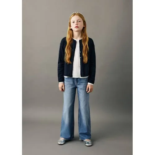 Deze lichtblauwe Mango Kids wide leg jeans is een praktische basic voor elke dag. De broek is gemaakt van 100% katoen en heeft een soepel vallende wide leg pasvorm die ruim zit rond de benen. De lichte wassing in light blue denim zorgt voor een casual uitstraling die makkelijk combineert met T-shirts, truien en vesten.Comfortabele pasvorm en doordachte details Gemaakt van 100% katoen, voelt zacht aan en is prettig voor dagelijks gebruik Wide leg model met recht vallende, wijde pijpen voor extra bewegingsvrijheid Regular waist, sluit aan in de taille Knoop- en ritssluiting aan de voorkant voor een vertrouwd draaggevoel Met riemlussen, handig als er een ceintuur gedragen wordt Vijf zakken: twee zijzakken, een muntzakje en twee opgestikte achterzakken Gerafelde broekspijpen voor een casual afwerking Effen light blue denim kleur, makkelijk te combineren met verschillende stijlenElke dag draagbaar lichtblauw denimDeze jeans past goed bij schooldagen, speelafspraken en weekenduitjes. In combinatie met een sweater en sneakers ontstaat een casual outfit, met een blouse en laarsjes is de broek ook geschikt voor meer verzorgde combinaties. De wide leg pasvorm biedt genoeg bewegingsruimte om vrij te rennen en spelen.Mango Kids, moderne stijl voor kinderenMango Kids biedt kinderkleding met een moderne, herkenbare stijl en een praktische insteek. De ontwerpen sluiten aan bij de laatste trends, maar blijven tegelijk geschikt voor elke dag. Zo wordt het kiezen van outfits eenvoudig en duidelijk.Een veelzijdige jeans met een ruime pasvorm, geschikt voor drukke dagen vol plannen.