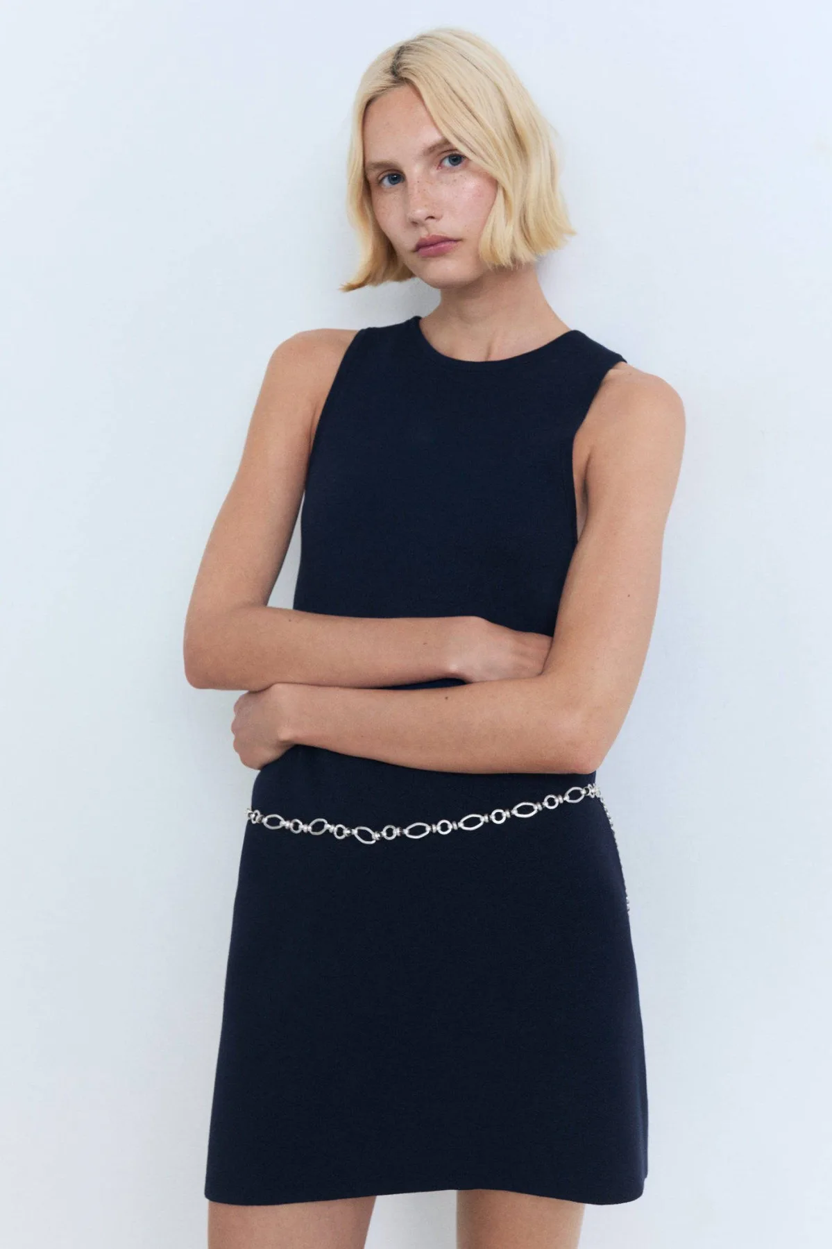 Design: Rechte zoom, Met riem; Materiaal: Knitwear; Halstype: Ronde hals; Motief: Effen; Soort bandjes: Brede bandjes; Extra's: Fully fashioned, Met textuur; Lengte: Kort/mini; Snit: Recht; Pasvorm: Normale pasvorm; Armlengte: Mouwloos