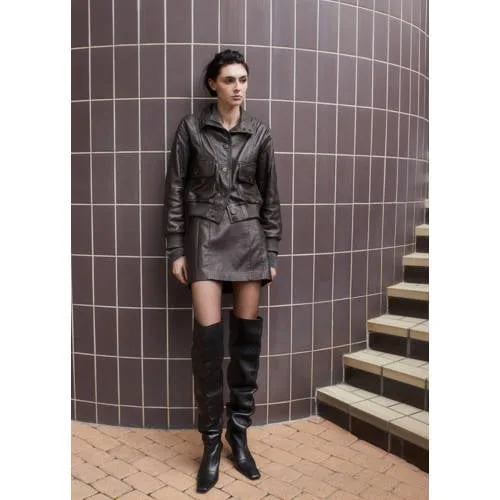 Mango leren jack donkerbruin
