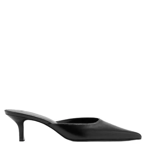 Deze zwarte leren muiltjes van Mango voor dames combineren een verfijnde look met praktisch gemak. Het open instapmodel zonder sluiting schuif je snel aan, terwijl de spitse neus en het slanke hakje je outfit direct een elegante uitstraling geven. Ideaal als je zoekt naar schoenen die zowel naar kantoor als tijdens een etentje goed tot hun recht komen.Verfijnde details voor alledaags gebruik Effen zwarte kleur die makkelijk combineert met zowel casual als meer geklede outfits Buitenkant gemaakt van leer voor een verzorgde, luxe uitstraling Voering en binnenzool met een gladde, soepele touch voor prettig loopcomfort Rubberen buitenzool zorgt voor grip op verschillende ondergronden Hoge hak van 5 tot 6,5 cm voor een elegante houding Spitse neus voor een slank en modern silhouet Instapmodel zonder sluiting voor snel en makkelijk aan- en uittrekkenVan werkdag tot dinerDeze muiltjes passen goed onder een rechte jeans met een blouse, maar ook onder een midi-jurk of pantalon. De hakhoogte geeft net wat extra lengte en een mooie houding, terwijl het open model luchtig aanvoelt tijdens warmere dagen.Mango: stijlvol en eigentijdsMango staat bekend om modieuze collecties die goed aansluiten bij het dagelijkse leven. De schoenen zijn ontworpen met aandacht voor vorm en detail, zodat je ze vaak en lang kunt dragen. Met deze muiltjes haal je een stijlvaste basis in huis waar je seizoen na seizoen plezier van hebt.Een elegante keuze als je op zoek bent naar veelzijdige schoenen die je look moeiteloos verfijnen.