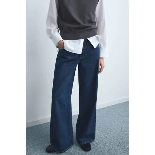Mango low waist wide leg jeans dark blue denim Prijzen