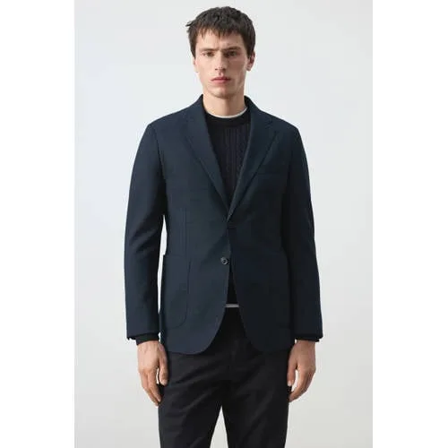 Mango Man colbert met wol donkerblauw