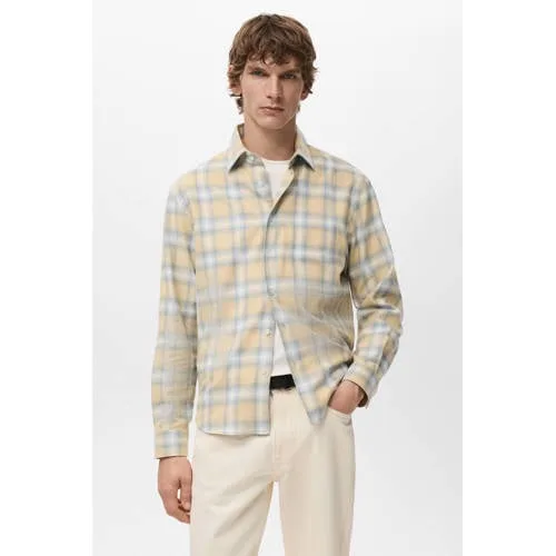 Mango Man Comfort geruit casual overhemd geel Prijzen