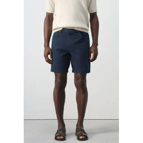 Deze donkerblauwe denim korte broek voor heren van Mango Man is een moderne basic voor elke zomerse dag. De slim-fit pasvorm sluit mooi aan zonder strak te zitten en de lichte stretch door de 1% elastomeer zorgt dat je makkelijk blijft bewegen. De marine kleur is subtiel en tijdloos, ideaal voor zowel een casual als iets nettere outfit.Eigentijdse denim look Gemaakt van 99% katoen / 1% elastomeer voor een soepele stof met een beetje stretch Denimachtige katoenen stof met effen dessin voor een rustige uitstraling Slim-fit pasvorm voor een moderne, aansluitende look Rits- en knoopsluiting met riemlussen zodat je eenvoudig een riem kunt dragen 5-pocket model met twee zijzakken, muntzakje en twee opgestikte achterzakken Omgeslagen zoom aan de onderkant voor een verzorgde, relaxte finishVeelzijdig voor elke dagDe korte broek past gemakkelijk in je dagelijkse garderobe. Combineer met een T-shirt en sneakers voor een ontspannen vrije dag of draag er een overhemd met korte mouw boven voor een nette, maar nog steeds comfortabele look. De denimstijl maakt het een stuk dat je het hele seizoen door pakt.Mango Man stijlMango Man richt zich op moderne herenkleding met heldere lijnen en draagbare designs. De collectie combineert actuele trends met praktische details, zodat je eenvoudig outfits samenstelt die er verzorgd uitzien en prettig zitten in het dagelijks leven.Een betrouwbare basis voor zomerse looks waar je vaak naar zult grijpen.