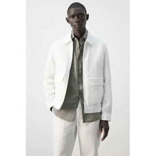 Voor lichte lagen op warmere dagen is deze linnen zomerjas voor heren van Mango Man een rustige, stijlvolle jas. De jas komt uit de Casper Ruud x Mango collectie en is gemaakt van 100 procent linnen, met een luchtige en soepele touch. De witte kleur is exclusief online verkrijgbaar en geeft elke outfit een frisse, moderne uitstraling.Functionele details in een helder design Gemaakt van 100 procent linnen, geschikt voor het zomerseizoen Klassieke overhemdkraag voor een nette, moderne look Lange mouwen met knoopmanchetten voor een verzorgde afwerking Dubbele ritssluiting waardoor je de opening eenvoudig aanpast Twee voorzakken met klep en een binnenzak voor je essentials Gedeeltelijk gevoerd met katoen en viscose voor extra draagcomfort Korte lengte die goed combineert met een chino, jeans of short Effen witte kleur, exclusief online beschikbaarLichte jas voor zomerse dagenDeze jas draag je makkelijk over een T-shirt of een linnen overhemd. Het luchtige materiaal maakt het een praktische laag voor frisse ochtenden, koele avonden of winderige stranddagen. De combinatie van de ritssluiting en overhemdkraag geeft zowel een casual als een iets gekledere uitstraling.Mango Man essentialsMango Man staat voor moderne collecties met heldere lijnen en draagbare ontwerpen. De Essentials-lijn richt zich op tijdloze basisstukken die seizoen na seizoen terugkomen in je garderobe. Deze jas past daar goed in met zijn rustige vormgeving, doordachte details en comfortabele materialen.Een zomerse laag met een verzorgde look en een ontspannen, luchtige touch.