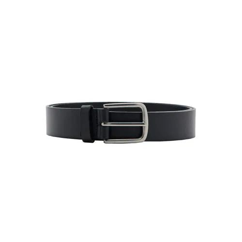 Deze riem van Mango Man is zwart. De sluiting is een metalen gesp. De riem is gemaakt van leer en heeft een effen ontwerp. Je stelt de lengte makkelijk in.