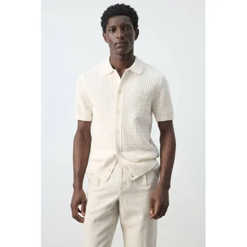 Mango Man regular casual overhemd ecru gebreid Prijzen