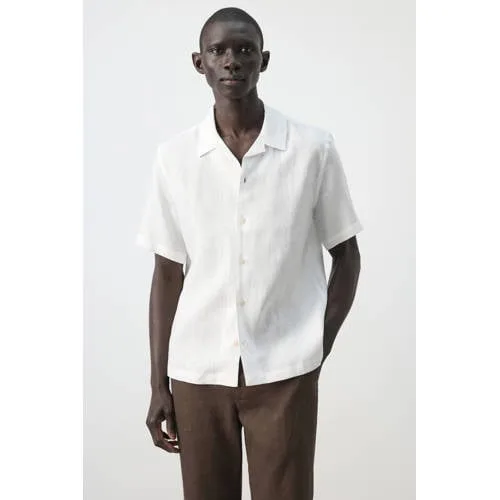 Fris, licht en moeiteloos modern, dit linnen heren overhemd met korte mouwen van Mango Man is een fijne basic voor warme dagen. Het effen witte ontwerp met bowlingkraag geeft een ontspannen uitstraling, terwijl de regular fit en standaardlengte ervoor zorgen dat het netjes valt. Gemaakt van 100% linnen voelt het materiaal luchtig aan, wat prettig is als de temperatuur oploopt.Details die het verschil maken Gemaakt van 100% linnen voor een luchtig en ademend gevoel Bowlingkraag met reverslook voor een moderne, casual stijl Regular fit en standaardlengte voor een comfortabele, rechtvallende pasvorm Korte mouwen, ideaal voor lente en zomer Knoopsluiting over de volledige lengte voor makkelijk aan- en uittrekken Rechte zoom, zowel los gedragen als deels ingestopt goed in model Effen witte kleur, eenvoudig te combineren met diverse broeken en shorts Zonder borstzak voor een rustige, strakke lookCasual uitstraling met een nette basisDit overhemd is een goede keuze als je iets zoekt dat tussen T-shirt en klassiek overhemd in zit. Combineer het met een chino of linnen broek voor een nette casual outfit of draag het met een korte broek voor een ontspannen vrije dag.Mango Man: modern en toegankelijkMango Man richt zich op hedendaagse herenmode met heldere lijnen en actuele fits. De collectie combineert draagbare basics met modern design. Zo voeg je eenvoudig stijlvolle, betrouwbare items toe aan je garderobe die je vaak en met plezier aantrekt.Een luchtig overhemd dat je zomeroutfits rustig en verzorgd laat aanvoelen.