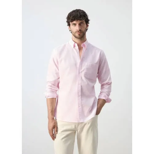 Dit pastelroze casual overhemd voor heren van Mango Man is een frisse basis voor je dagelijkse garderobe. De lichte stof en regular fit geven een ontspannen uitstraling, terwijl de nette button-down kraag zorgt voor een verzorgde look. Ideaal voor naar kantoor, een etentje of een vrije dag in de stad.Verzorgde look met comfortabel draaggevoel Gemaakt van 100% katoen, zacht en prettig om de hele dag te dragen Regular fit, valt recht langs het lichaam voor een comfortabele pasvorm Lichte stof in pastelroze, geeft een frisse en moderne uitstraling Button-down kraag, blijft netjes op zijn plek en oogt verzorgd Lange mouwen met knoopmanchetten voor een klassieke afwerking Opgestikte borstzak als praktisch detail Knoopsluiting over de hele lengte voor makkelijk aan- en uittrekken Wasbaar op 30 graden, eenvoudig te onderhoudenVeelzijdig in te zetten in je outfitsPastelroze is een toegankelijke kleur die makkelijk combineert met jeans, chino's of een donkere broek. Draag het overhemd los over een T-shirt voor een meer casual look, of gesloten in combinatie met nette schoenen voor een iets gekledere uitstraling.Mango Man: moderne stijl voor elke dagMango Man staat bekend om eigentijdse collecties met aandacht voor pasvorm en details. De items zijn ontworpen voor dagelijks gebruik, met een moderne, toegankelijke stijl die goed aansluit op een actieve levensstijl.Een fris, pastelroze overhemd dat moeiteloos meegaat van werkdag naar weekend.