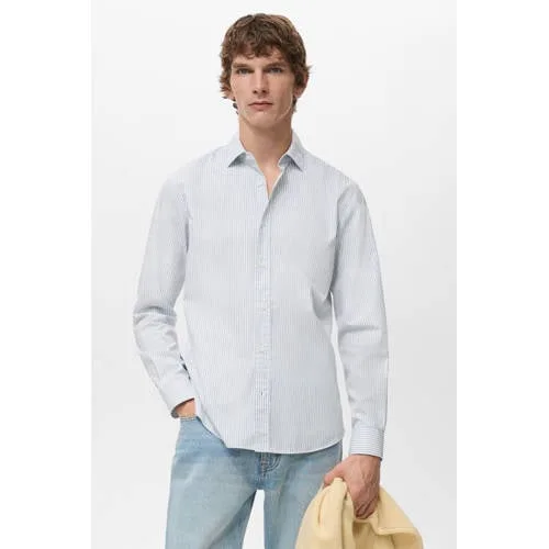 Mango Man Regular gestreepte casual overhemd lichtblauw Prijzen