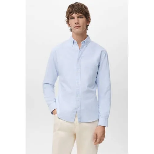 Mango Man Regular gestreepte casual overhemd lichtblauw Prijzen