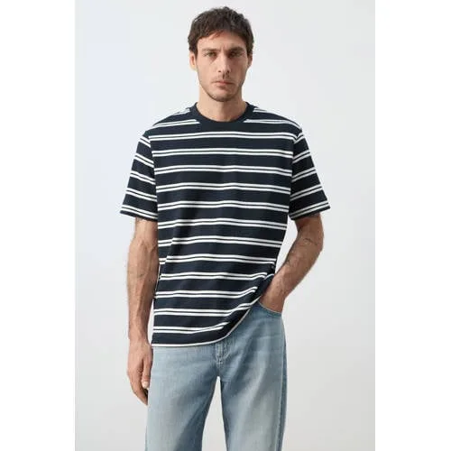 Mango Man regular gestreepte gestreept T-shirt donkerblauw