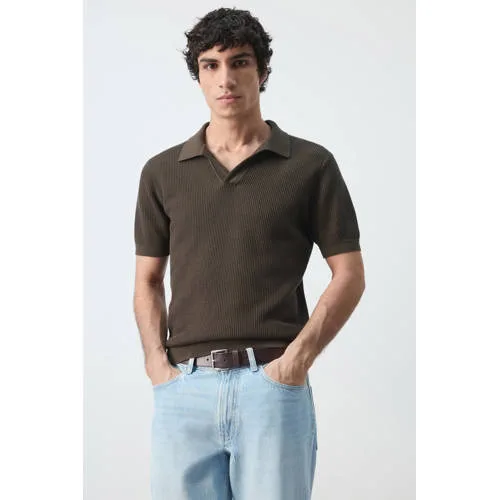 Mango Man regular polo gebreid donkerbruin Prijzen