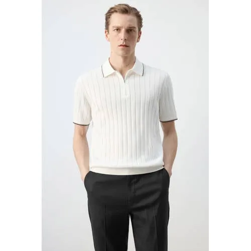 Mango Man regular polo gebreid ecru Prijzen