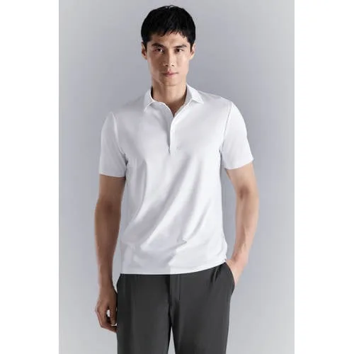Deze witte Mango Man polo heren uit de Performance-collectie is gemaakt voor dagen waarop je net wat meer van je outfit vraagt. De stof is warmteregulerend en ademt goed, zodat je lichaam op een stabiele temperatuur blijft, of je nu onderweg bent naar kantoor of een afspraak hebt in de stad. De lichte stretch beweegt soepel met je mee en geeft de polo een moderne, slank vallende look.Technische details voor dagelijks comfort Warmteregulerende stof met goed ademend vermogen voor een stabiel draagcomfort Comfort stretch, dankzij de toevoeging van elastomeer, voor extra bewegingsvrijheid Slank model dat mooi aansluit zonder strak aan te voelen Klassieke polokraag met knoopsluiting voor een verzorgde uitstraling Thermisch gesealde korte mouwen voor een strakke, moderne afwerking Onderzijde met hitte-afgedichte naden en twee subtiele zijsplitten Effen witte kleur, eenvoudig te combineren met jeans, chino of korte broek Gemaakt van een zachte mix met viscose die soepel aanvoelt op de huidVoor werk, weekend en alles daartusseninDeze polo past bij veel momenten op de dag. Combineer met een donkere chino voor een nette, maar ontspannen look op kantoor, of draag hem met een lichte jeans en sneakers voor een meer casual outfit. De technische details blijven discreet op de achtergrond, terwijl jij profiteert van het comfort.Mango Man: moderne stijl met een sportieve knipoogMango Man staat bekend om eigentijdse mode die gemakkelijk te dragen is in het dagelijks leven. In de Performance-collectie komen sportieve invloeden en nette basics samen in slimme materialen en doordachte details. Zo krijg je kleding die er verzorgd uitziet en tegelijk prettig aanvoelt, van ochtend tot avond.Een veelzijdige polo die je garderobe een frisse, moderne basis geeft.
