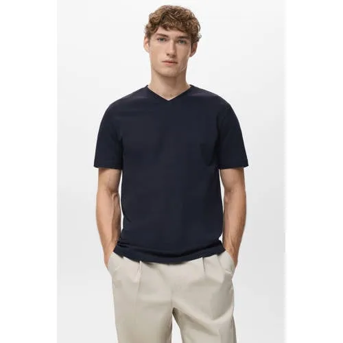 Dit Mango Man heren T shirt katoen is een eenvoudige basis voor iedere dag. De rechtvallende pasvorm geeft ruimte zonder te wijd te vallen. De effen kleur maakt dit T shirt makkelijk te combineren met jeans, chino of korte broek. Het model heeft een V hals en korte mouwen en draagt soepel door het gebruik van 100 procent katoen.Comfortabele basis met doordacht ontwerp Rechtvallende pasvorm voor een ontspannen silhouet Korte mouwen die prettig zijn op warmere dagen V hals die de halslijn subtiel accentueert Effen kleur die goed past bij diverse stijlen Gemaakt van 100 procent katoen voor een zachte touch Geen sluiting en geen zakken voor een rustig beeldVeelzijdig in vrije tijd en dagelijks gebruikDit T shirt is geschikt voor ontspannen momenten thuis, een dag in de stad of een informele werkdag. Draag het solo op een warme dag of onder een open overhemd wanneer extra lagen wenselijk zijn.Stijlgevoel van Mango ManMango Man richt zich op moderne kleding met heldere lijnen en een tijdloze uitstraling. De ontwerpen sluiten aan op het dagelijks leven en combineren draagcomfort met een verzorgde look. Zo biedt het merk betrouwbare basics en nette items voor verschillende gelegenheden.Een rustige basic die eenvoudig met verschillende kledingstukken is te dragen.
