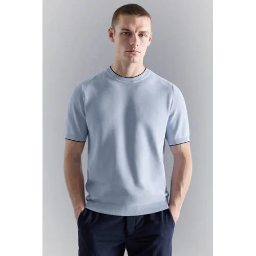 Mango Man regular T-shirt gebreid lichtblauw