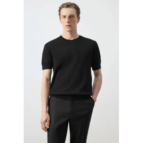 Mango Man regular T-shirt gebreid zwart